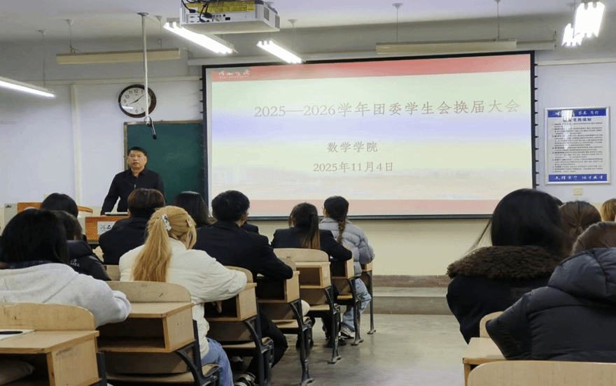 11月4日晚上,数学学院2025-2026学年团委、学生会换届大会顺利召开。学院党委负责人、辅导员、团委、学生会成员、学生代表参加大会,本次大会由辅导员主持。