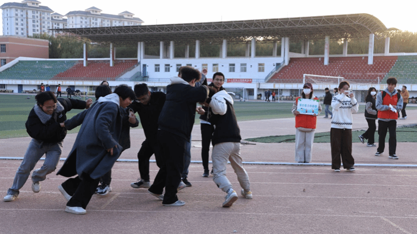 11月22日,数学学院在校本部塑胶操场组织开展“携手同行・为心赋能”心理健康解压运动会,学院新生班主任、辅导员和2025级全体新生参加。